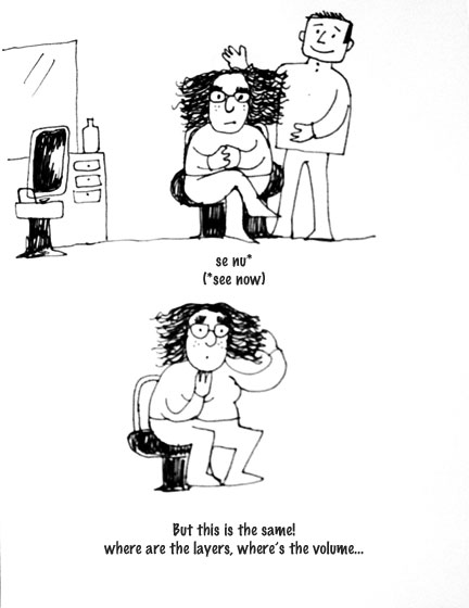 arrey, even when the hairdresser *speaks* english, they bloody never geddit baba.