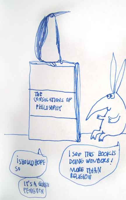 The Consolations of Philosophy, which I am enjoying immensely. It’s really a “self-help book” for philosophers by one of my favorite authors Alain de Botton.