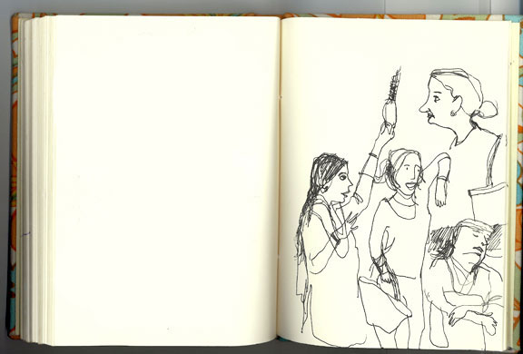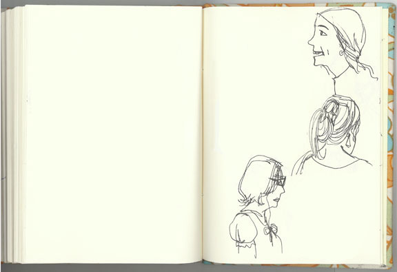 I usually spend an hour on the Delhi Metro every evening. Sometimes I sketch the women around me (since I travel in the women’s coach).