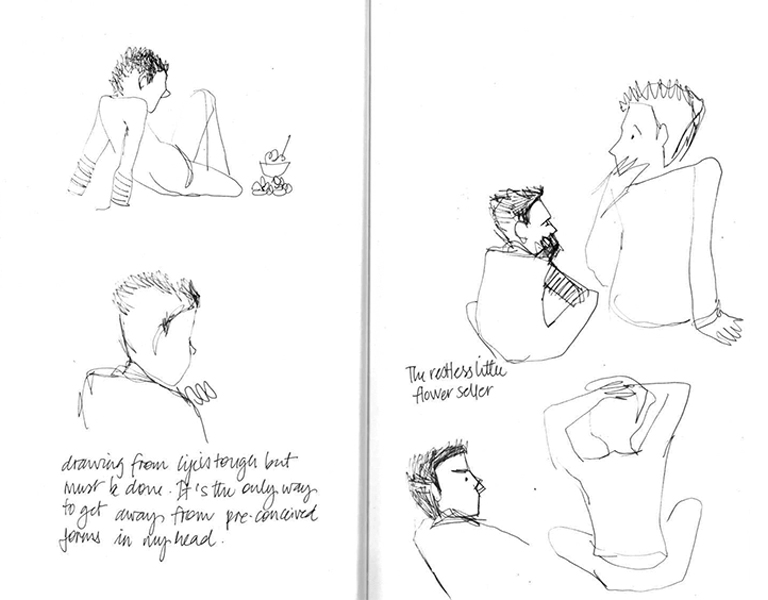 [Drawing from life is tough, but it must be done. It’s the only way to get away from the pre-conceived imagery in my head.]