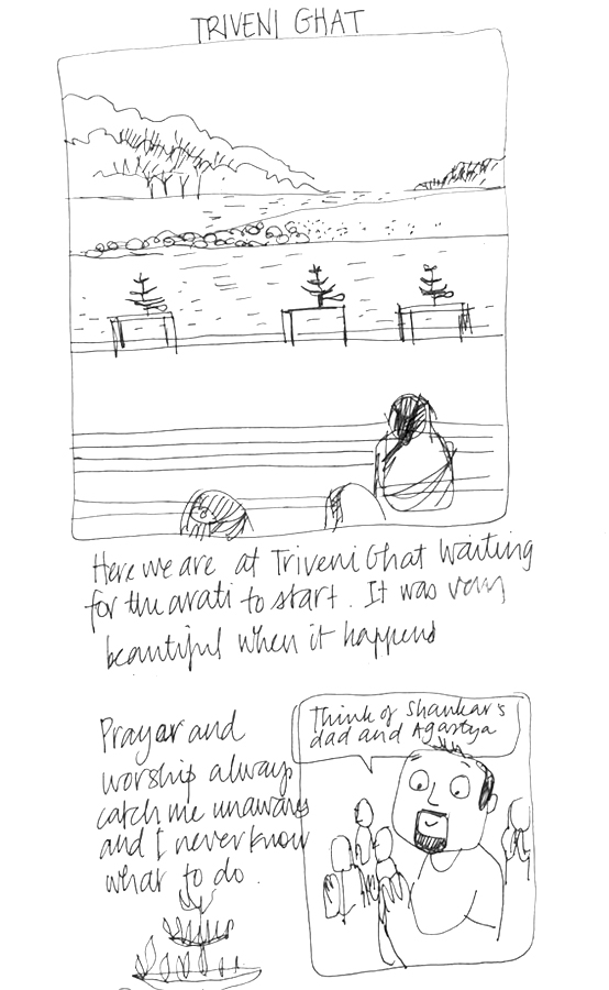 There is something special about a midweek holiday. Being the crazy workaholics that we are, we surprised ourselves with this rare treat last week, and drove up to Rishikesh in Uttarakhand. The last time we went on holiday, there weren’t any people to sketch, so this time we made sure that we’d get some suitable moments.