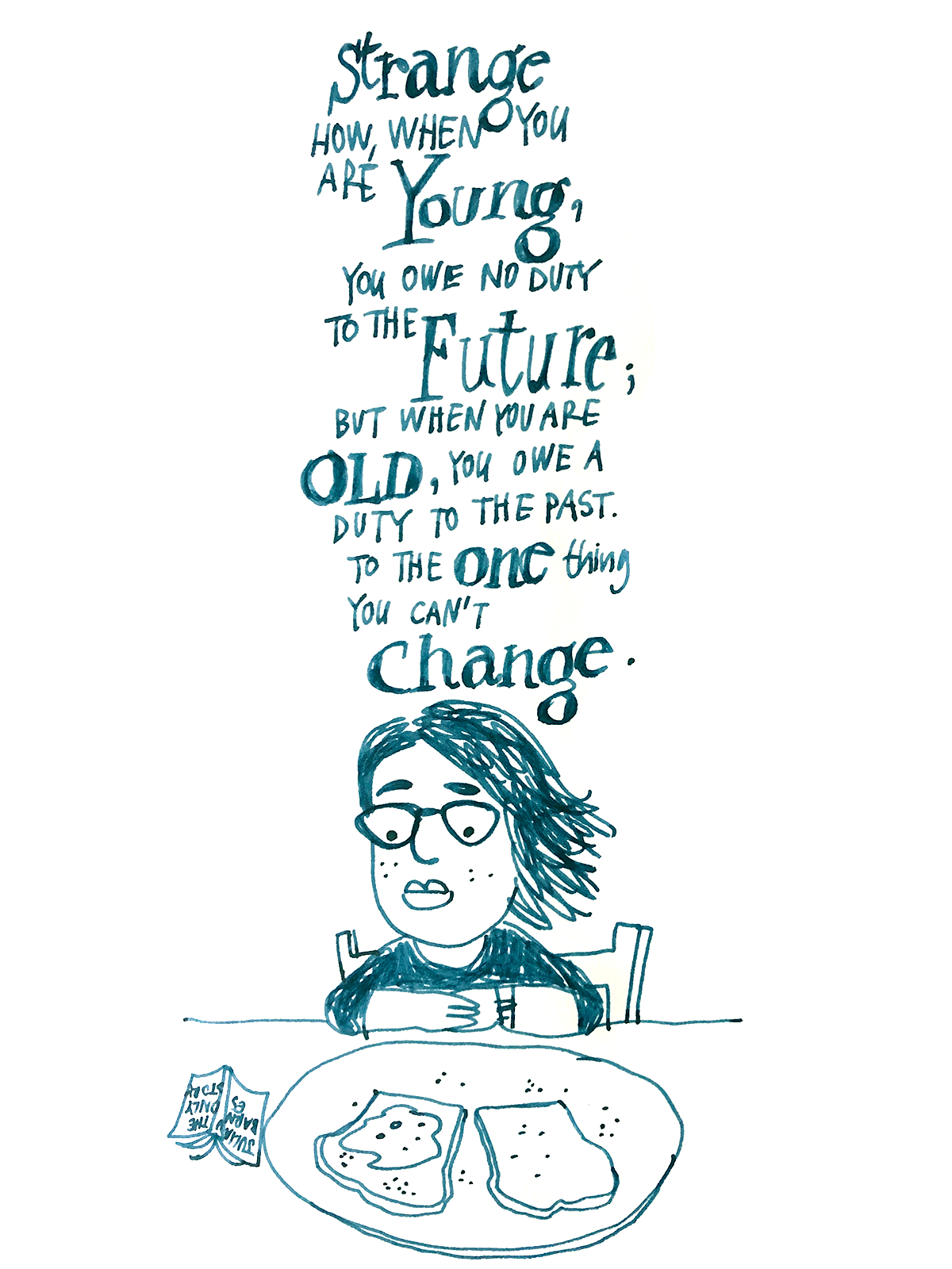 Some time last year I read The only story by Julian Barnes. Like all other books by Julian Barnes, I found it thought-provoking and it stayed with me long after I was done. Here’s a drawing from while I was reading the book.