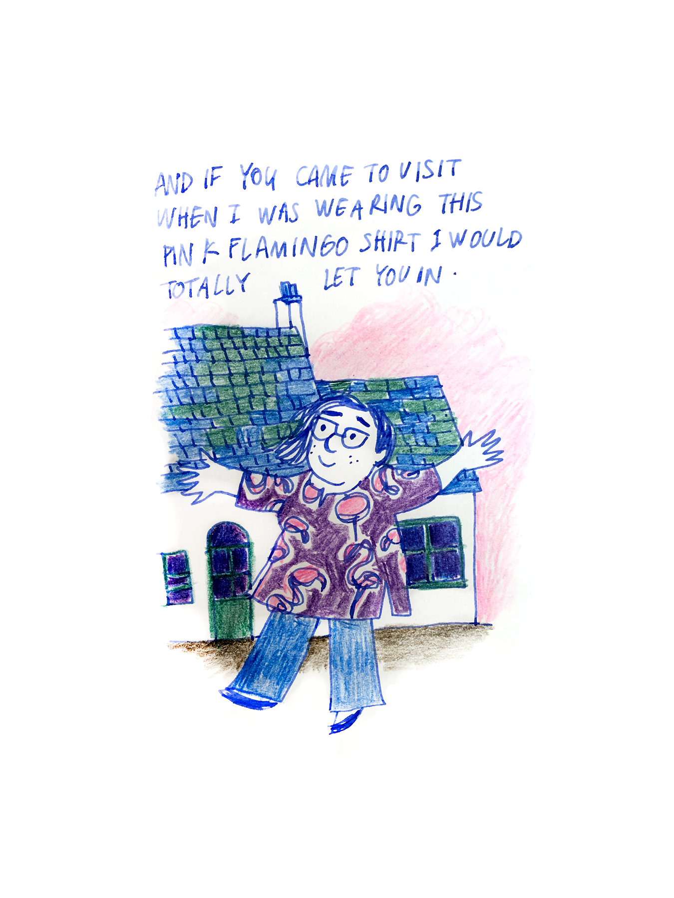 And if you ever came to visit when I was wearing this pink flamingo shirt, I would totally let you in…