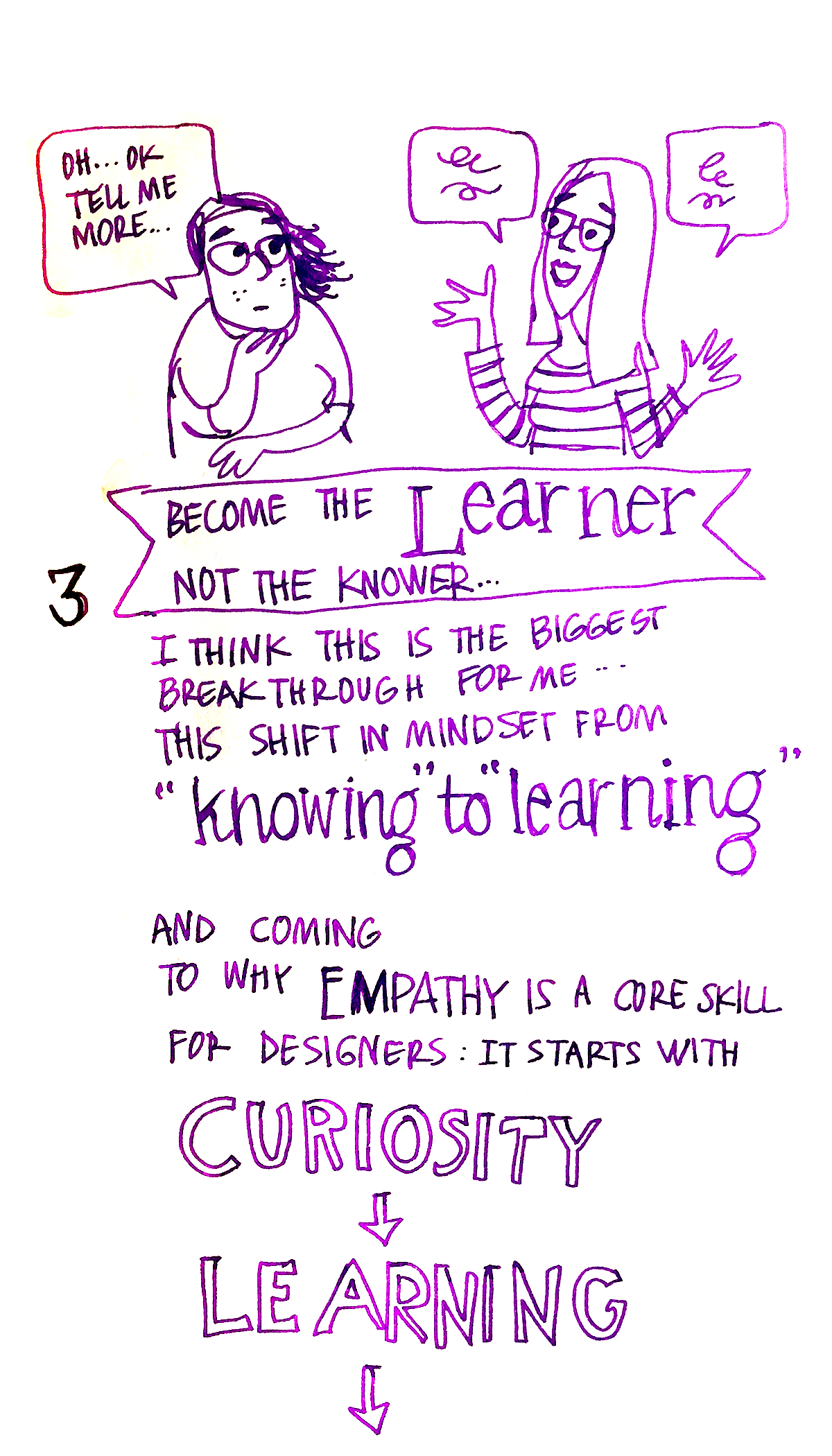 Become the learner not the knower. I think this is the biggest breakthrough for me — the shift in mindset from “knowing” to “learning”.