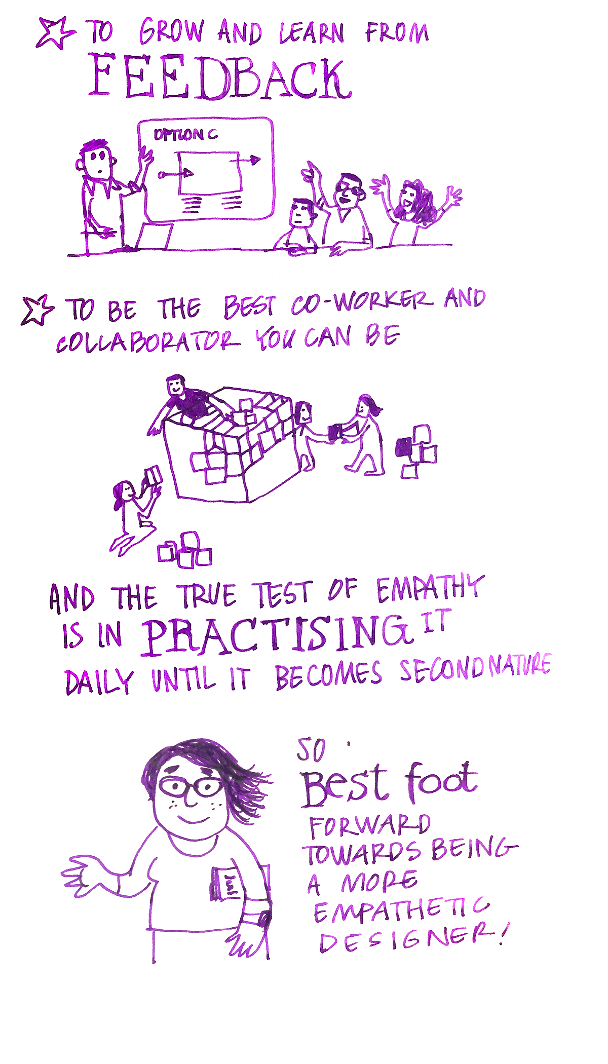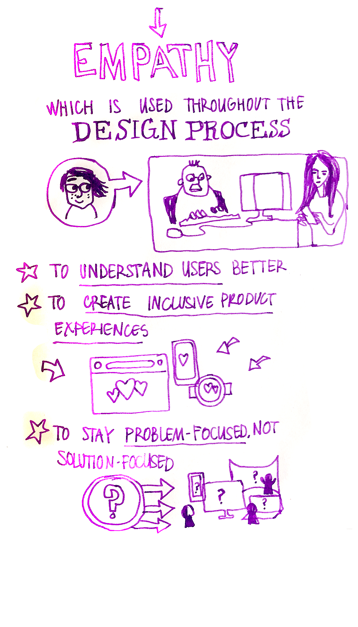 And coming to why empathy is a core skill for designers: It starts with Curiosity, Learning, Empathy, which is used throughout the design process: To understand users better, to create inclusive product experiences, to stay problem-focused, not solution-focused, to grow and learn from feedback, and to be the best coworker and collaborator you can be. And the true test of empathy is in practising it daily until it becomes second nature. So best foot forward towards being a more empathetic designer!]
