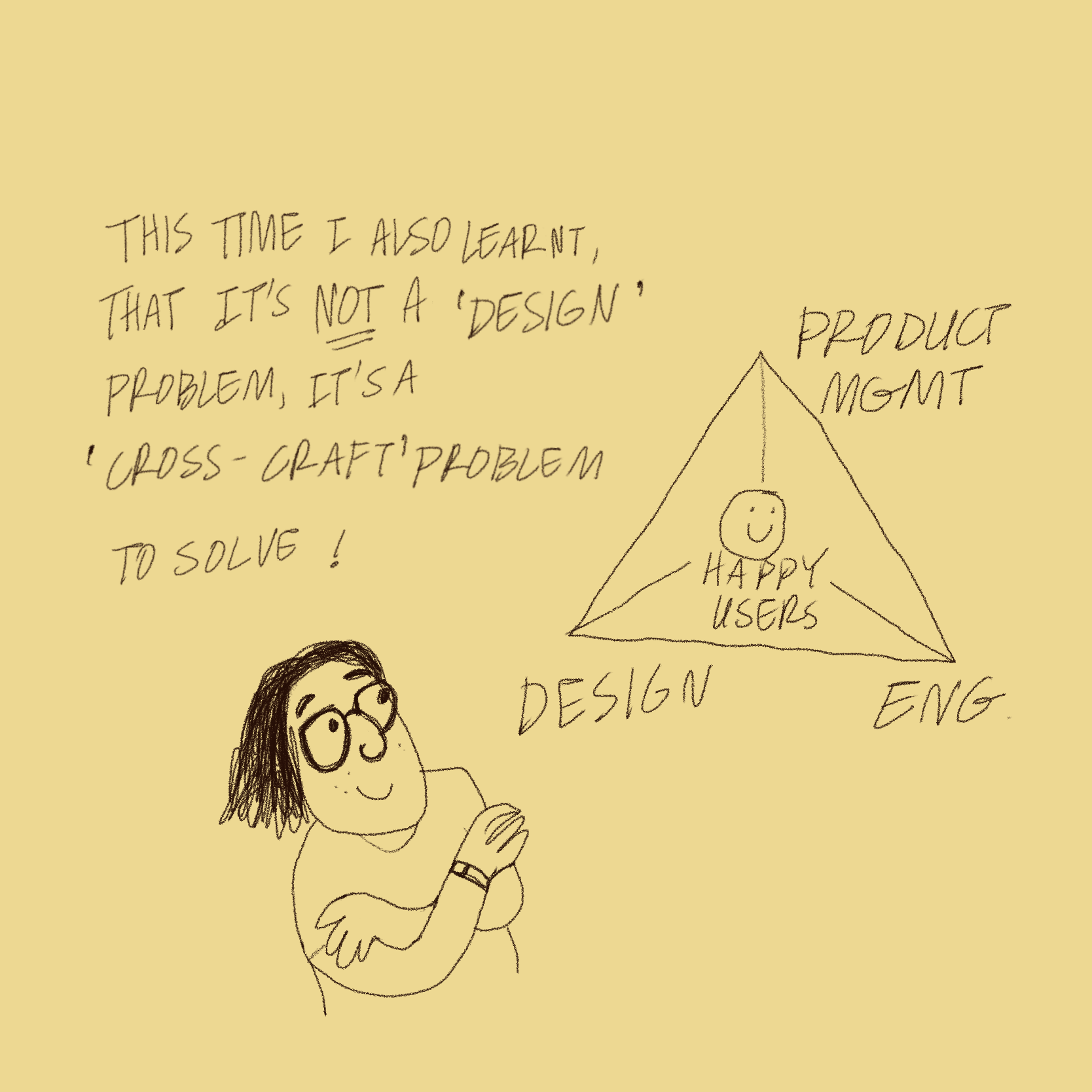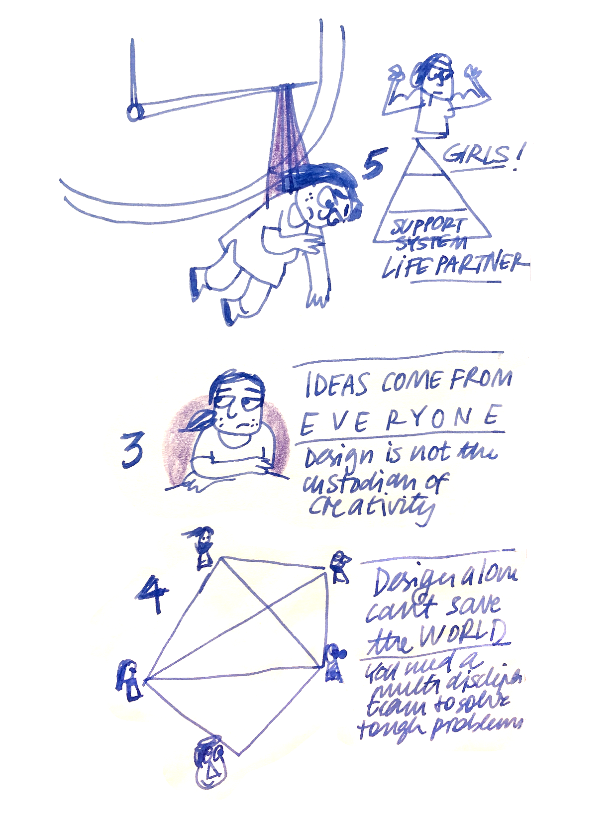 Another awesome talk which I couldn’t draw – because my pen had run out of ink – was “Design Leadership without losing your hair” by Param Venkataraman.