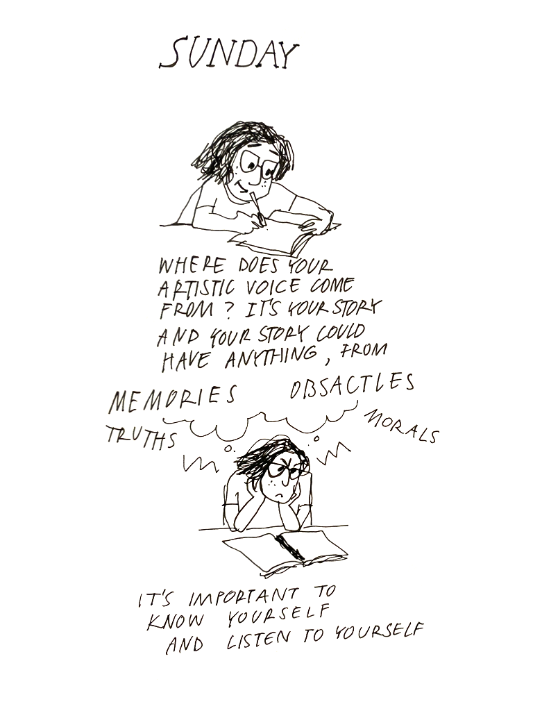 Where does your artistic voice comes from? It’s your story – and your story could have anything, from memories, obstacles, truths and morals. It’s important to know yourself and listen to yourself – even though it hurts. And also, hours and hours of craft and expression so the craft becomes part of your body and your expression can break through. the journey to finding your voice comes with a lot of risks and failures – but trusting that you will always find the way to your voice.