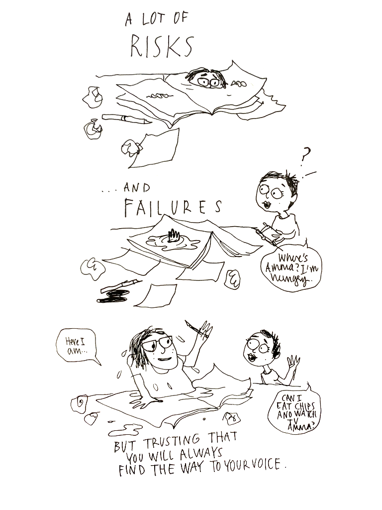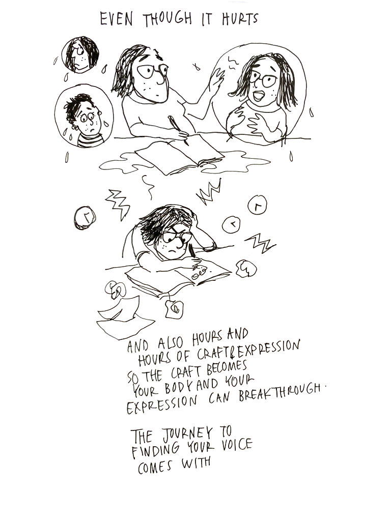 These are the resources that I’ve found useful – The Artist’s Way, Find Your Artistic Voice (which I may be quoting above), and doing Lynda Barry’s exercises.