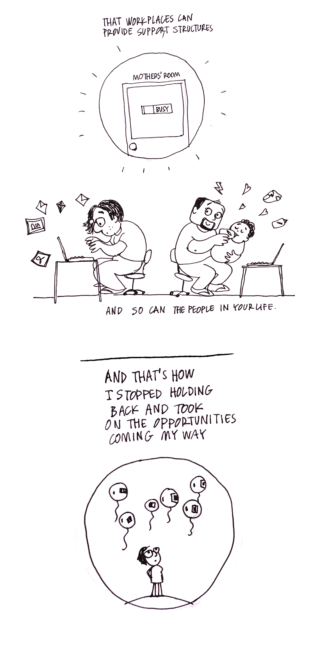 Through her stories I understood it’s possible to have a career and be a mother, that workplaces can provide support structures, and so can the people in your life.