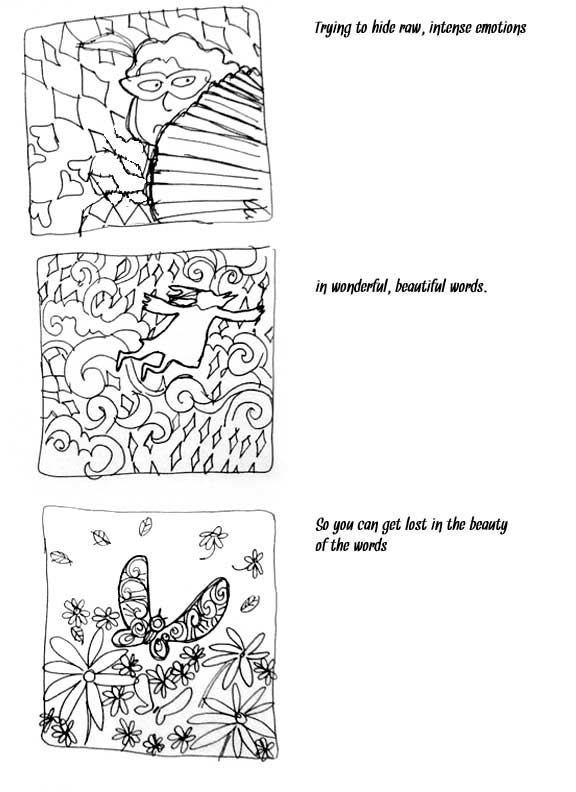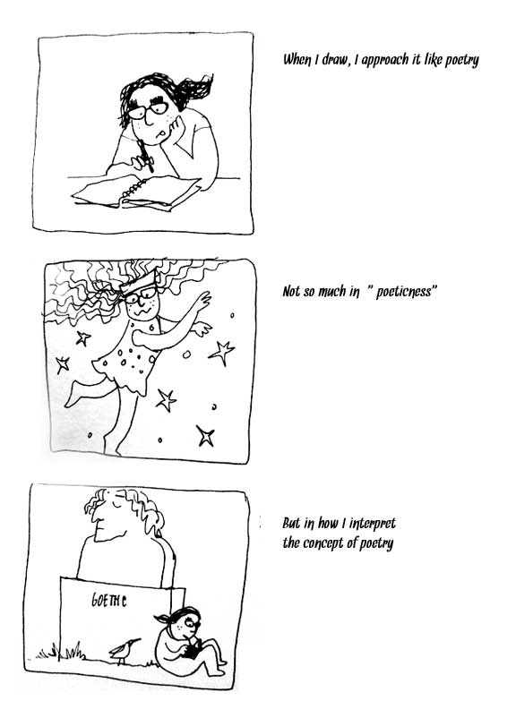 This is a drawing I made while eating by myself and reading a poem one day. I forgot what I was eating and I can’t even remember the poem, but I enjoyed it enough to draw about it!