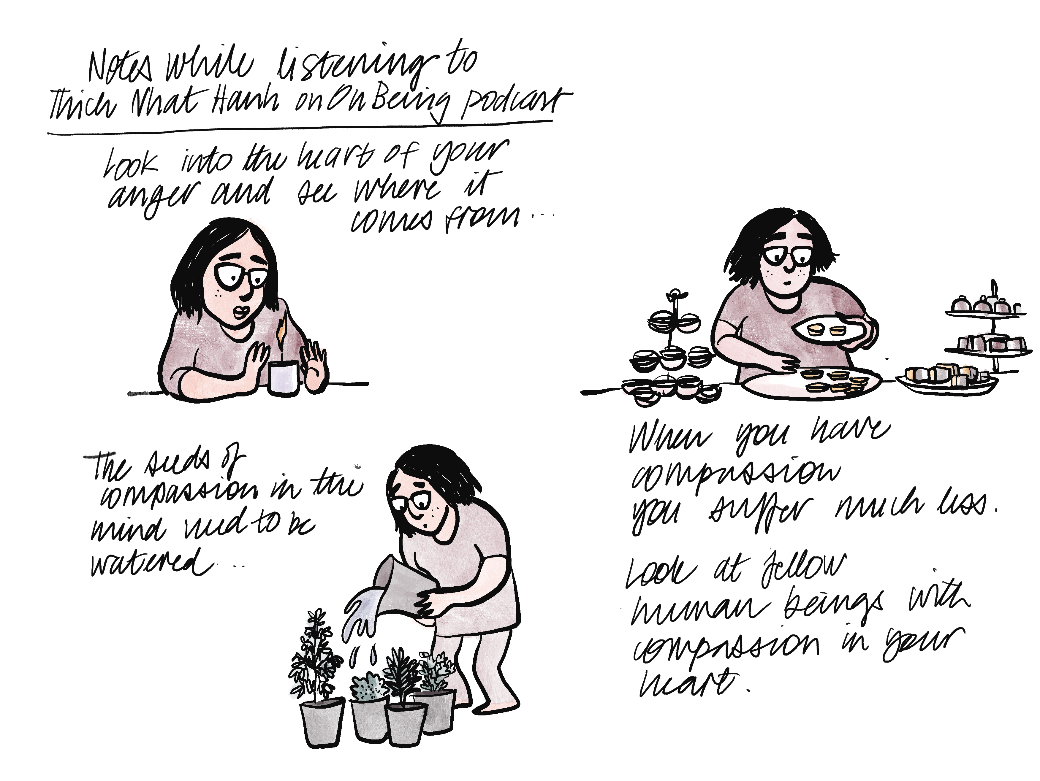You may be aware of my constant endeavours toward becoming a more kind and compassionate person. When I was younger I used to dream about a divine collision, later on, Pema’s books have guided me on this quest. These notes are from the On Being podcast Remembering Thich Nhat Hanh, Brother Thay.