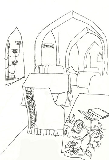 We also spent time seeing Coptic Cairo, the areas where the Greek orthodox church settled, built around the place where Joseph & Mary took shelter with the baby Jesus as they fled to Egypt! Coptic Cairo was an avalanche of adornment. As faiths were practiced, flourished, and overtaken by other faiths at the same location, the influences of visual language remained, overlaid on top of each other…and the need to show devotion through ornamentation of the holy site, however small the space, prevailed…