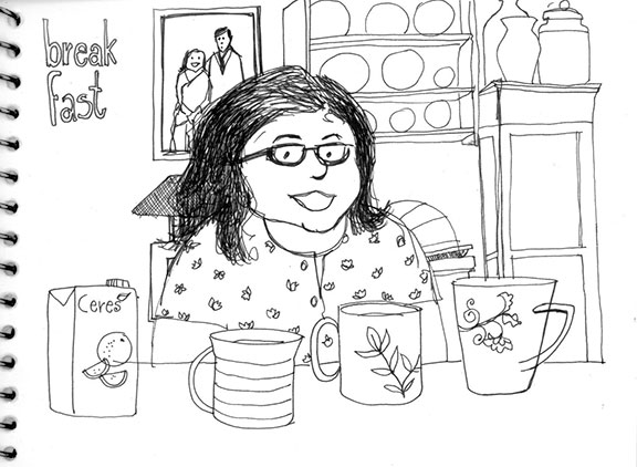 The food was always fabulous, and I had to stop drawing and eat.