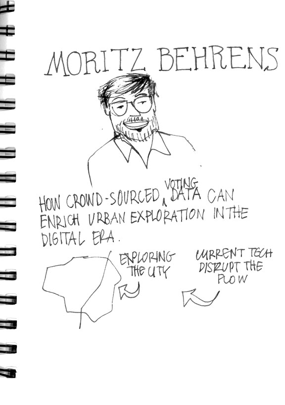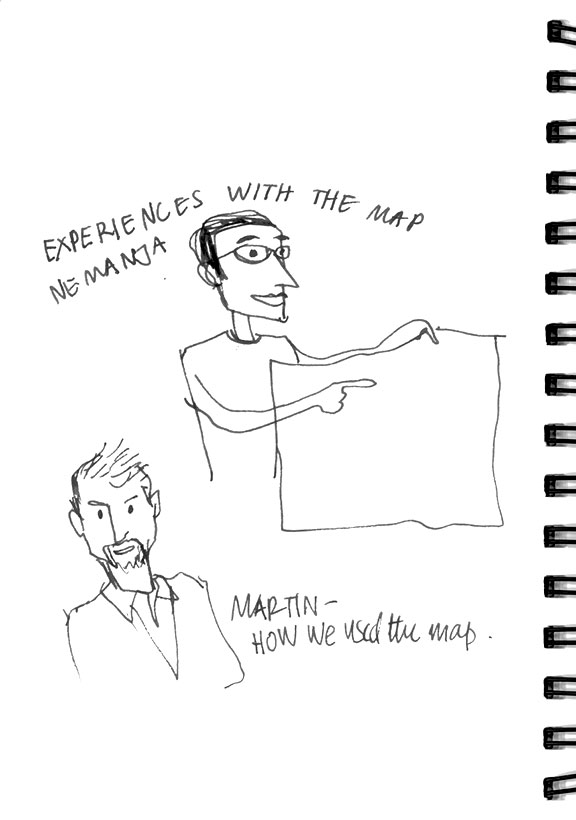 I got really engrossed in the discussions that followed so there are no more drawings from the workshop, but later on at the conference Moritz presented the workshop proceedings (only he wasn’t grinning like I’ve drawn).
